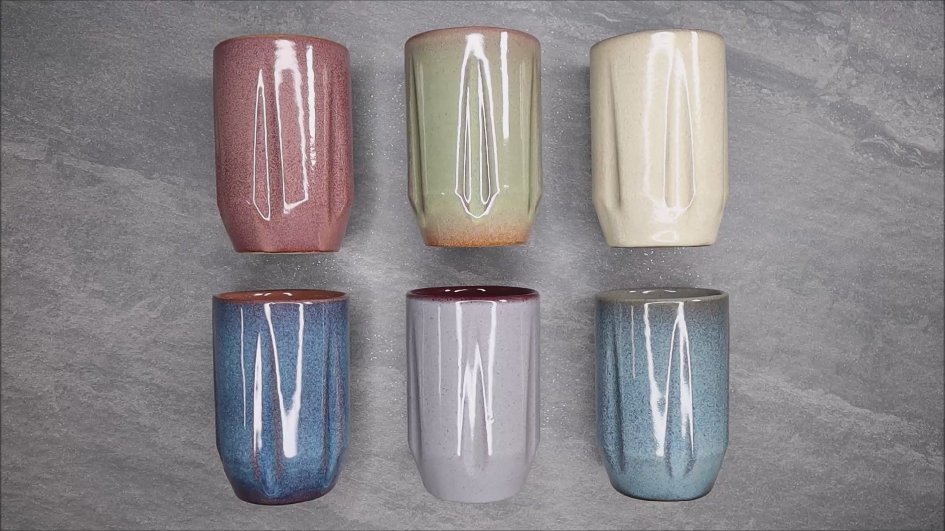 This round notched ceramic tumbler has a capacity of 16 ounces and is available in 6 glaze color options. It is non toxic (lead free), dishwasher and microwave safe. Each ceramic cup is handmade using the slip casting method in Anaheim, California and fired over 2200 degrees Fahrenheit. Being handmade, each cup is one of a kind and will be slightly different from the picture.