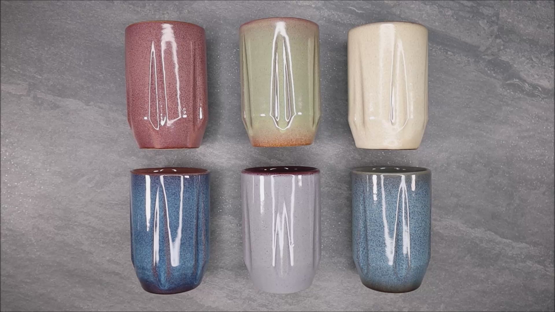 This round notched ceramic tumbler has a capacity of 16 ounces and is available in 6 glaze color options. It is non toxic (lead free), dishwasher and microwave safe. Each ceramic cup is handmade using the slip casting method in Anaheim, California and fired over 2200 degrees Fahrenheit. Being handmade, each cup is one of a kind and will be slightly different from the picture.