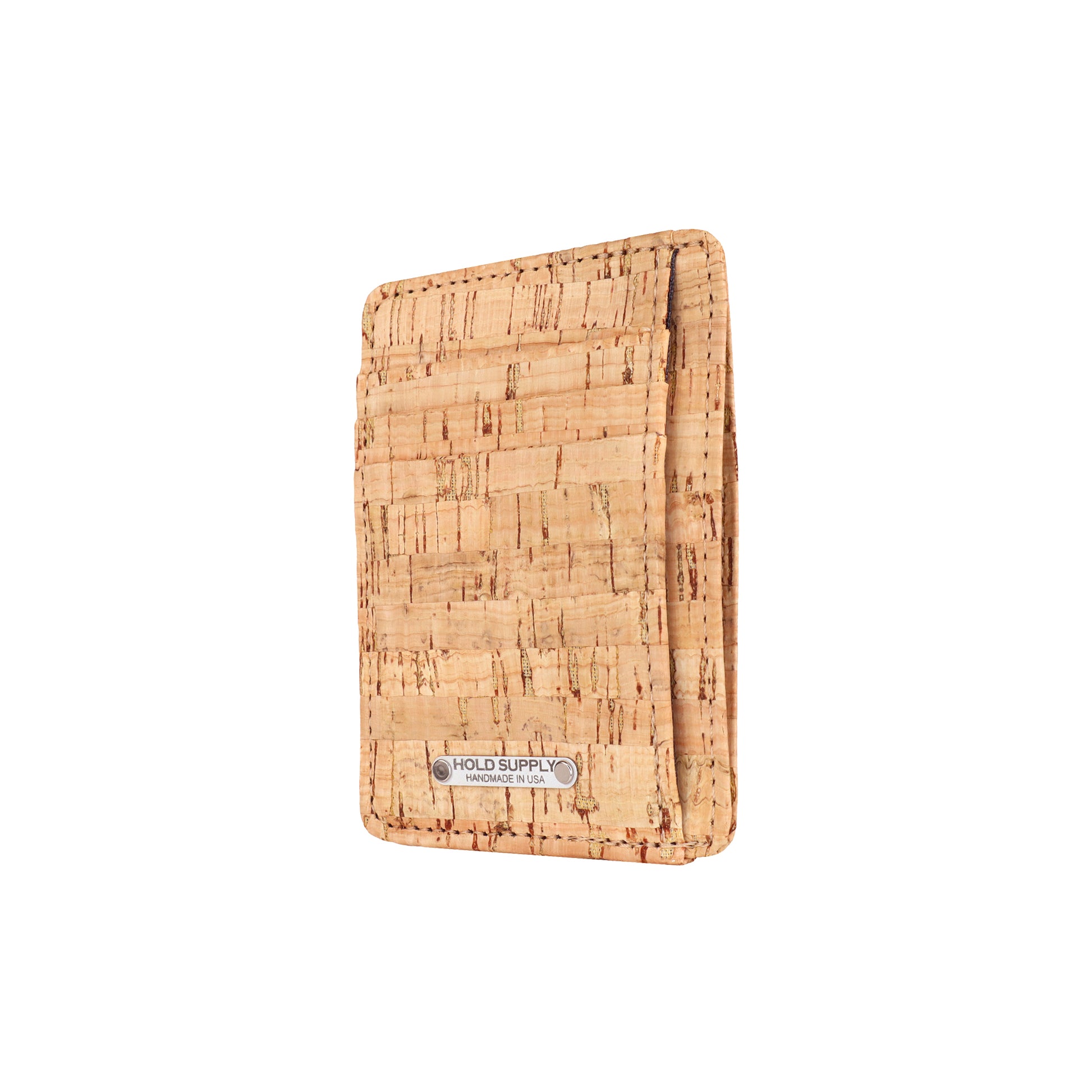 - Materials: This wallet is made with genuine cork fabric made from the sustainable shavings of bark from a cork oak tree. Cork fabric is vegan, durable, water repellent, stain resistant and easily cleanable with soap and water. The soft yet durable natural quality of cork makes it the perfect material for bags and wallets.
