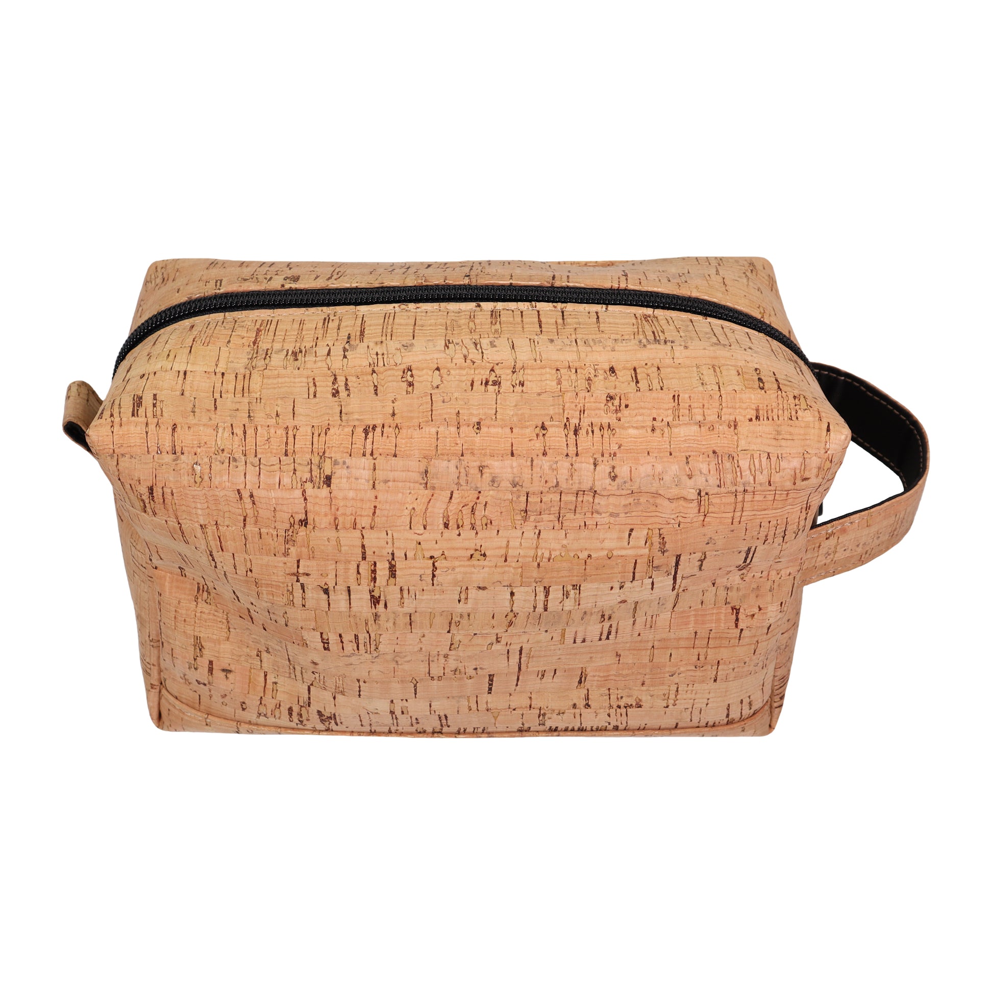 This artisan made tall cork toiletry bag is the perfect way to take your hygiene and grooming essentials with you on the go. This sturdy, handsome bag is designed for both men and women and features a top zippered closure, zippered front pocket and a reinforced cork strap. With a size of 9.5” wide x 5.5” tall x 4.25” deep, this cork dopp kit has the perfect amount of space for all of your bathroom essentials.