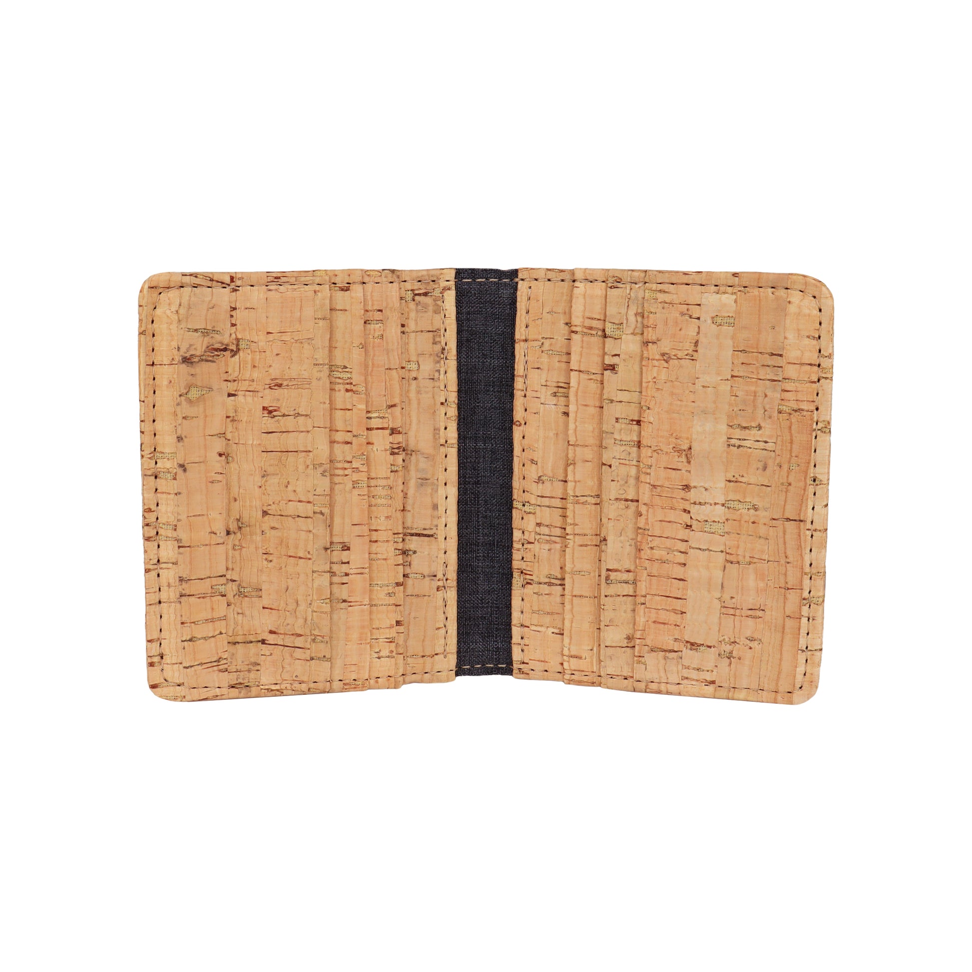 This artisan made cork vertical bifold is handcrafted with soft yet durable genuine cork fabric made from the sustainable shavings of bark from a cork oak tree. With a total of 8 card slots and 2 cash compartments, this wallet has the perfect balance of capacity and slenderness.