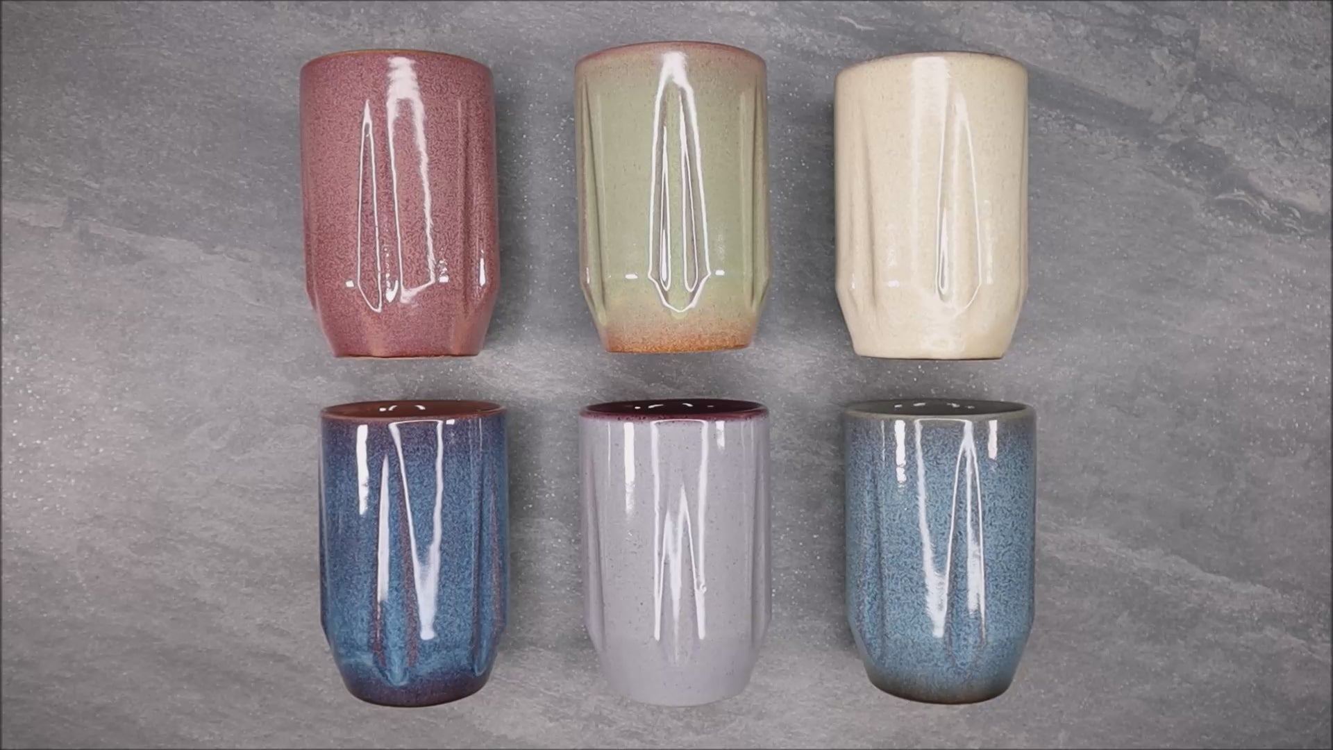 This round notched ceramic tumbler has a capacity of 16 ounces and is available in 6 glaze color options. It is non toxic (lead free), dishwasher and microwave safe. Each ceramic cup is handmade using the slip casting method in Anaheim, California and fired over 2200 degrees Fahrenheit. Being handmade, each cup is one of a kind and will be slightly different from the picture.